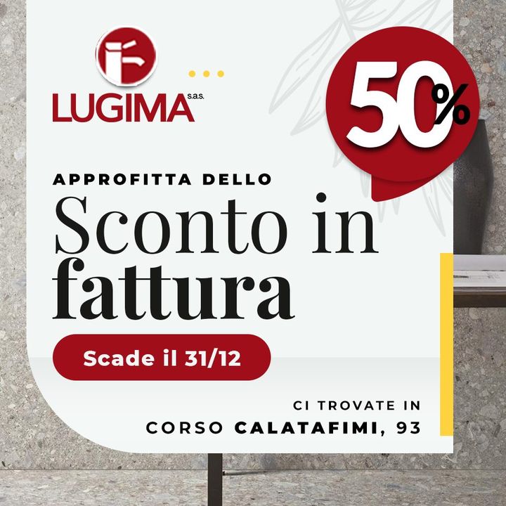 Leggi altroSe la #ristrutturazionhe era nei vostri pensieri, oggi è il momento giusto ‼️Da @Lugima puoi usufruire dello #SCONTO #immediato in #Fattura del 50%, rientrano tutti i materiali acquistabili presso il nostro Showroom con eccezione dei mobili bagn...